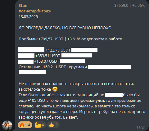 Через моё обучение прошло уже несколько сотен человек. Многие из них сегодня стабильно зарабатывают 3–7% к капиталу на неэффективностях рынка, даже в “мёртвые” периоды.