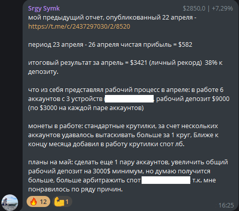 РЕЗУЛЬТАТ: Сделал арбитраж дополнительным источником заработка, +5% к депозиту в среднем за рабочий день. Результат по последним отчетам $4.000+ за месяц